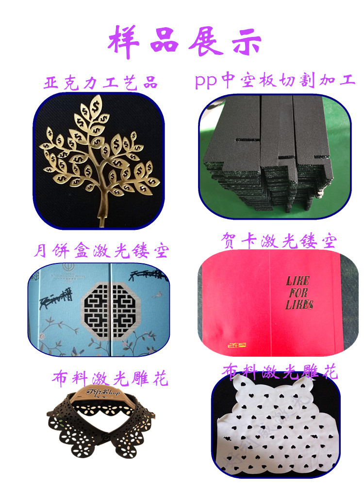 激光加工蘇州好利威激光加工廠;專業承接加工激光沖孔尼龍布料激光熱切,安全帶,玩具布料激光裁切、貼標攝像頭激光加工、布料熱切加工、服裝花邊激光熱切、雪紡面料熱切、激光加工、布料切割、布料裁剪、布料鏤空、亞克力切割、皮革激光切割鏤空沖孔、箱包手袋熱切花、激光打標加工. 商標切割、服裝布料面料裁片、紙制工藝品;竹木工藝品;無仿布毛氈工藝品;亞克力工藝品;如鏤空賀卡,蛋糕圍邊,竹木掛件,竹木書簽,木制立體拼圖玩具,無紡布餐杯墊,亞克力立體拼圖,婚慶用品,圣誕用品等我們秉持親愛精誠的原則、以優良的品質、完善的服務、低廉的價格、熱忱服務于您。